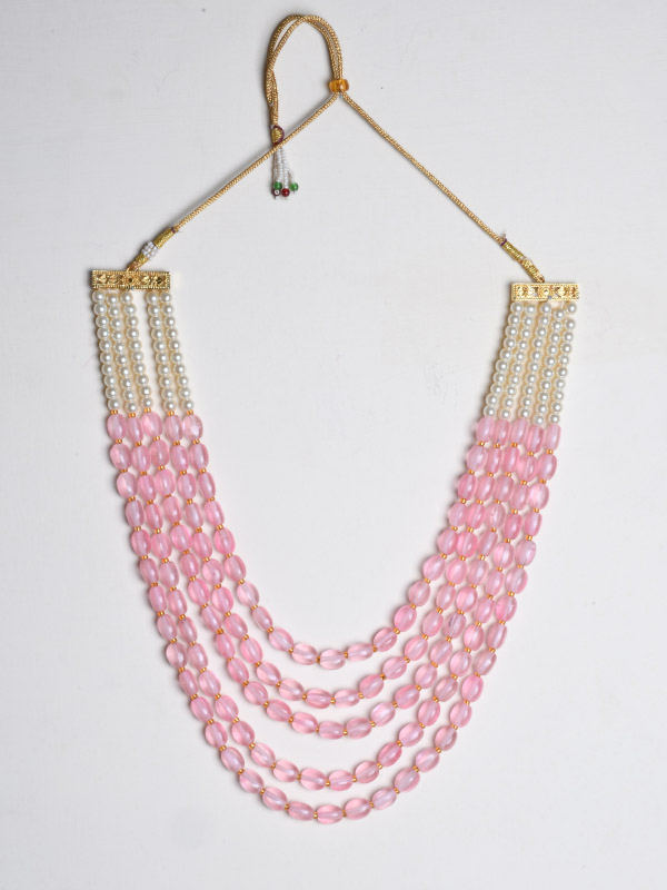 Light Weighted Moti Mala Maharaja Haar For Men. This captivating set is a great gifting option and is a perfect pick to add to your jewelry collection. You can style it with ethnic or western clothing.