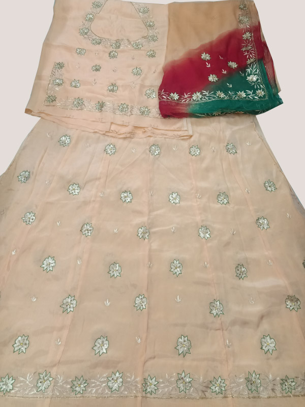 Rohida beautiful and best quality heavy :AARI hand work Saten thakurji pyor odhna full 2.5 mtr. Hand Work