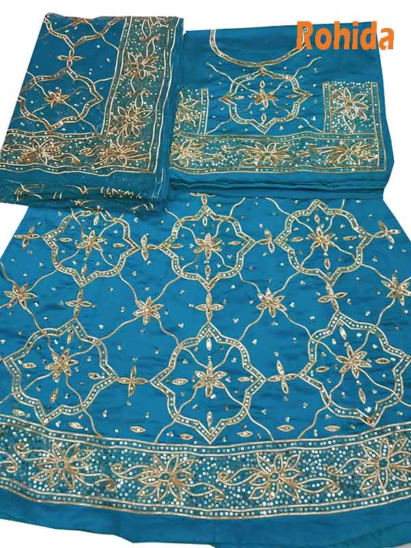 firoozi colour poshak saatan and pyor odhna with goota and taari hand work