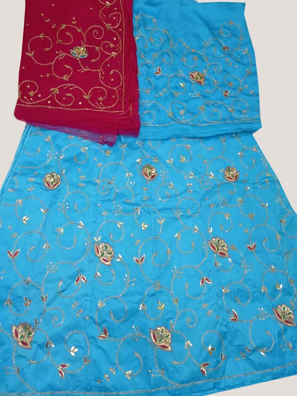 Rohida beautiful and best quality heavy :AARI TAARI  hand work Saten thakurji pyor odhna full 2.5 mtr. Hand Work