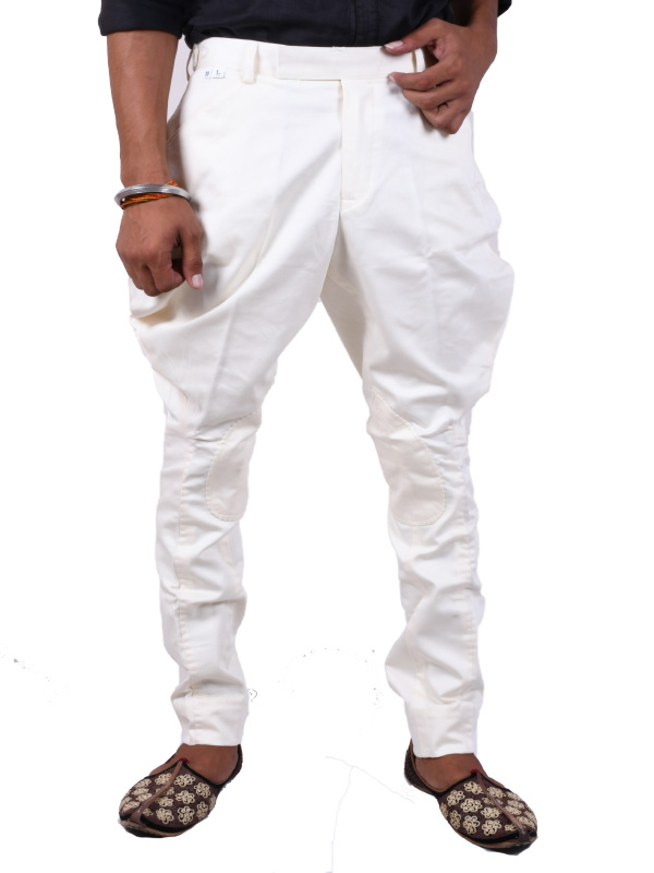 In earlier times, Breeches were worn for activities like Horse riding, hunting, playing Polo by Kings and Knights. Breeches are made in such a way that they are baggy from waist to knee and from knee to ankle they are tight, perfect for these activities. Gradually they have become a trademark fashion attire among Royal families of Rajputana with slight modification in design.