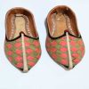 Handmade Embroidered Mojari or Juti (Rajasthani footwear) is recognized as the most classic footwear of the India. These highly colorful Mojaries will undoubtedly suit the fashion taste of every individual. Mojari is a generic name of handcrafted ethnic footwear produced in India. These are generally made of sheep, camel or goat leather and the designs are created on the velvet casing attached to the leather. These are soft and extremely comfortable to use. Jaisalmer, Jodhpur, Barmer, Bikaner, Pali and Jalore are world famous for their intricately and finely designed Jutis/Mojaries.Beautiful handcrafted embroidered stylish mojari from Bhinmal(Rajasthan). Styled for comfort, Juti is recognized as the most classic footwear for men. This multi colour Mojari with traditional embroidery work will undoubtedly suit the fashion taste of every individual.