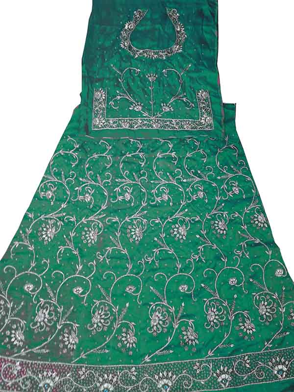 Rama colour poshak Bembeer saatan and pyor odhna With Jardoji hand work