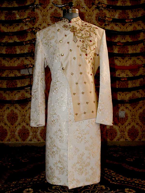 The sherwaniis generally associated with historically and is favored by than sherwaniormal occasions in especially by those from rajshthan the or sherwani is generally worn with the combination of Churidar as the lower garment.This Readymade Attire is Enhanced with Buttons and Print and is Crafted in Chinese Collar Neck and Full Sleeve