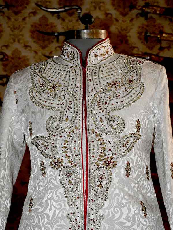 The sherwaniis generally associated with historically and is favored by than sherwaniormal occasions in especially by those from rajshthan the or sherwani is generally worn with the combination of Churidar as the lower garment.This Readymade Attire is Enhanced with Buttons and Print and is Crafted in Chinese Collar Neck and Full Sleeve
