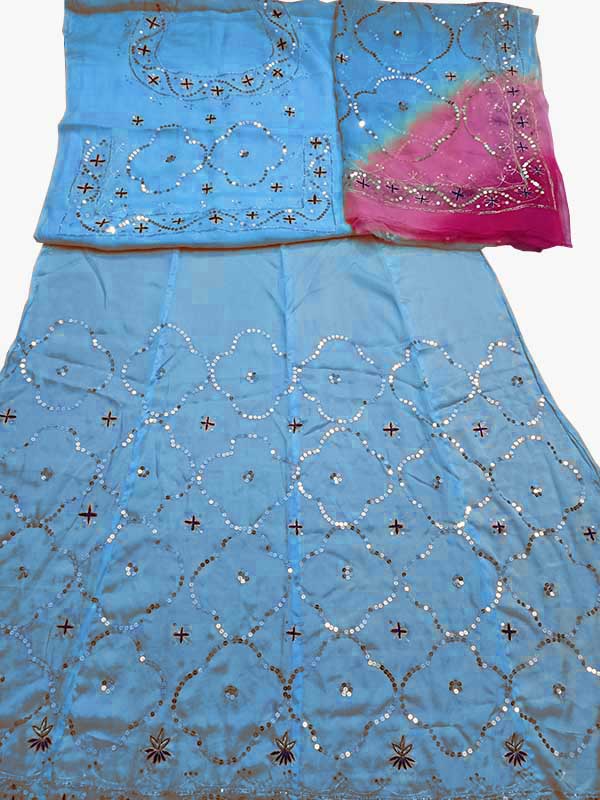 Sky Blue colour poshak saatan and pyor odhna with taari hand work